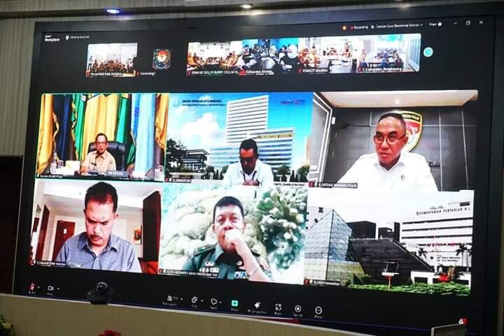 Bengkulu,reformasinews.com- Pemkot Bengkulu yang diwakili Asisten II Sehmi, Staf Ahli Rosminiarty, Inspektur Eka Rika Rino dan beberapa Kepala OPD mengikuti Rapat Koordinasi (Rakor) Pusat Data (Pusda) Tim Pengendalian Inflasi Daerah (TPID) secara virtual melalui Zoom Meeting, dari Ruang Monitoring Center Diskominfo Kota Bengkulu, Senin 20 Desember 2025.