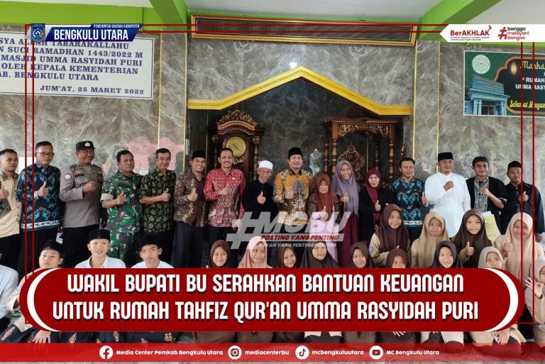 Bengkulu,reformasinews.com – Wakil Bupati Bengkulu Utara, Arie Septia Adinata menyerahkan bantuan keuangan dari Anggaran Pendapatan dan Belanja Daerah (APBD) Kabupaten Bengkulu Utara untuk Rumah Tahfiz Al Qur’an Umma Rasyidah Puri di Desa Karang Anyar 2, Kecamatan Argamakmur, Kamis (5/12/2024).