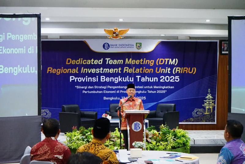 Bengkulu,reformasinews.com- Bank Indonesia Perwakilan Bengkulu menggelar Dedicated Team Meeting (DTM) Regional Investment Relation Unit (RIRU) atau Pertemuan Tim Khusus (DTM) Unit Hubungan Penanaman Modal Daerah (RIRU) Provinsi Bengkulu Tahun 2025 pada Kamis 13 Maret 2025.