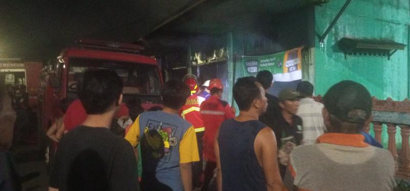 Tiga ruko satu lantai pintu rolling door milik H. Ishak Yunus tersebut berisi dagangan manisan. Kebakaran tersebut membuat sontak warga setempat usai solat subuh.