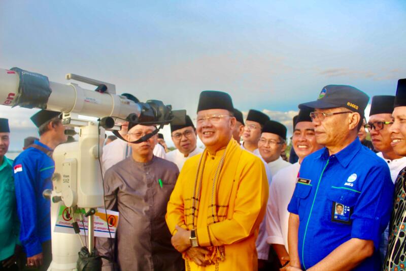 Bengkulu,reformasinews.com-Gubernur Rohidin Mersyah didampingi oleh Kepala Kanwil Kemenag Bengkulu Muhammad Abdu dan beberapa Tokoh Agama melakukan pemantauan Rukyatul Hilal (Penentuan Awal 1 Ramadhan 1445 Hijriyah) di Gedung Mess Pemda Bengkulu, Minggu 10/3/2024.