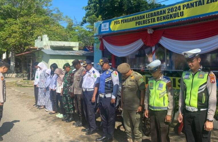 Personil Pos Pengamanan Pantai Zakat Melaksanakan Apel pagi untuk kesiapan kegiatan di Pos Pam Pantai Zakat. Selanjutnya, melakukan Pemantauan terhadap Masyarakat di seputaran Pospam Pantai Zakat Kec. Teluk Segara Kota Bengkulu dilansir TBnews.