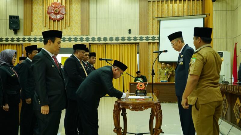 Bengkulu- Asisten I Sekoprov Bengkulu Khairil Anwar menyaksikan Penandatanganan Perjanjian Kinerja (PK) Eselon III dan IV Dinas Sosial Provinsi Bengkulu serta Dinas Tenaga Kerja dan Transmigrasi Provinsi Bengkulu di lingkungan dinas masing-masing pada Senin, 26/02/2024.