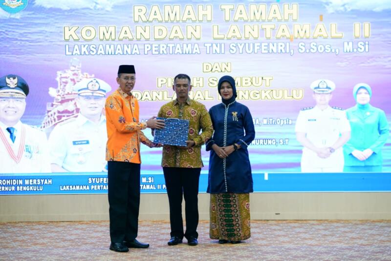 Gubernur Bengkulu Rohidin Mersyah pada acara tersebut menyampaikan ucapan selamat datang kepada Danlantamal II Padang, Laksamana Pertama TNI Syufenri, di Bumi Raflesia.