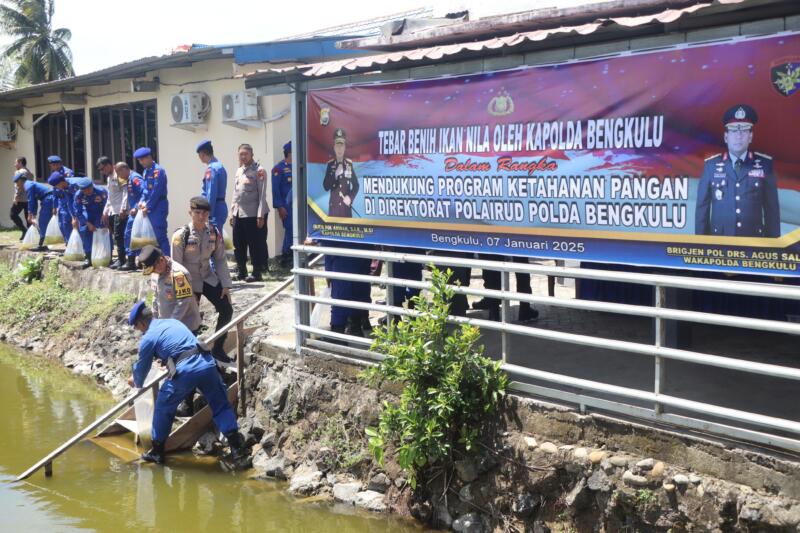 “Polda Bengkulu berkomitmen untuk mendukung ketahanan pangan di wilayah ini. Dengan tebar benih ikan nila sebanyak 30.000 ekor.