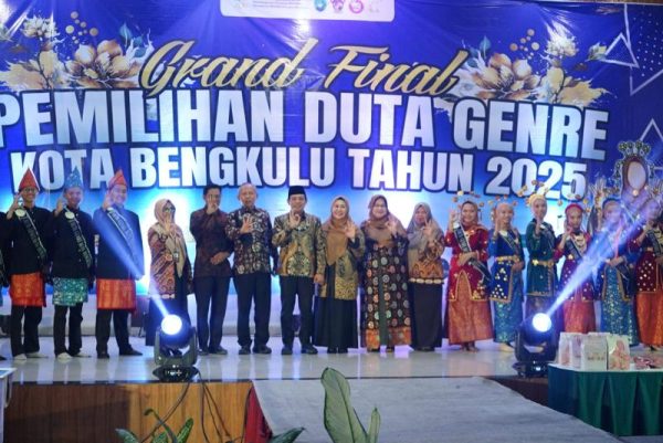 Penobatan Ayah-Bunda Genre Kota Bengkulu itu ditandai dengan pemakaian selmpang bersama agen duta Genre Kota Bengkulu tahun 2025 di acara Grand Final pemilihan Duta Genre yang digelar oleh DP3AP2KB di Adeeva Hotel, Jumat malam (17/10/25).