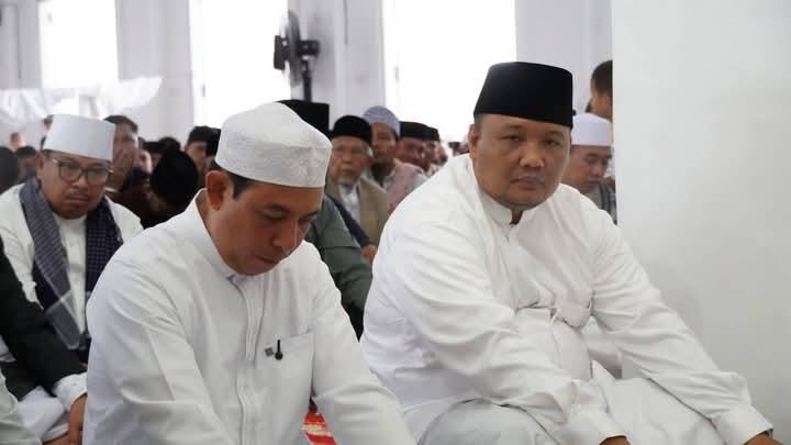 Walikota Bengkulu Dedy( peciputih) didampingi Wawalinya Roni Tobing Saat Salat di Masjid Merah Putih.Foto: ist