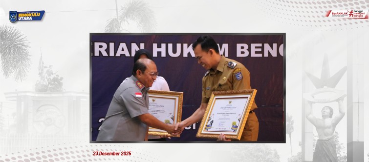 Pemkab Bengkulu Utara menerima Piagam Penetapan sebagai Kawasan Berbasis Kekayaan Intelektual dengan kategori Kawasan Karya Cipta dan Merek, bertempat di Hotel Grage Bengkulu, Selasa 23 Desember 2025.