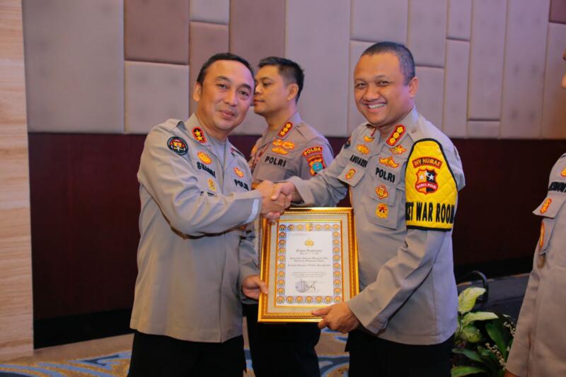 Penghargaan ini diberikan langsung oleh Kepala Divisi Humas Polri Kadiv Humas Polri Irjen Pol. Dr. Sandi Nugroho, S.I.K., S.H., M.Hum sebagai bentuk apresiasi terhadap kerja keras Bidhumas Polda Bengkulu dalam mengelola strategi komunikasi publik yang efektif.