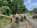 Seluma,reformasinews.com– Satuan Samapta Polres Seluma melaksanakan evakuasi pohon tumbang yang melintang di jalan raya Desa