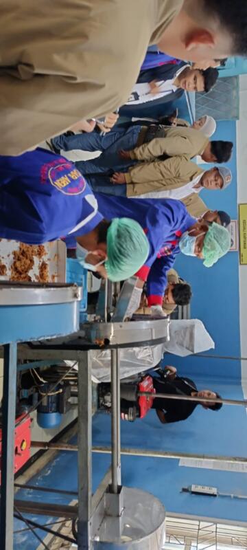 Para tamu yang akan memasuki ruang produksi diwajibkan menggunakan hand sanitizer untuk memastikan kebersihan.