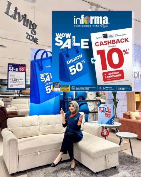 Di bulan Oktober ini ada promo Gratis pengiriman dan pemasangan untuk area Bengkulu dan luar kota. Selain itu INFORMA Bengkulu juga menghadirkan promo WOW SALE diskon hingga 50% + CASHBACK hingga 10% & hadiah langsung.