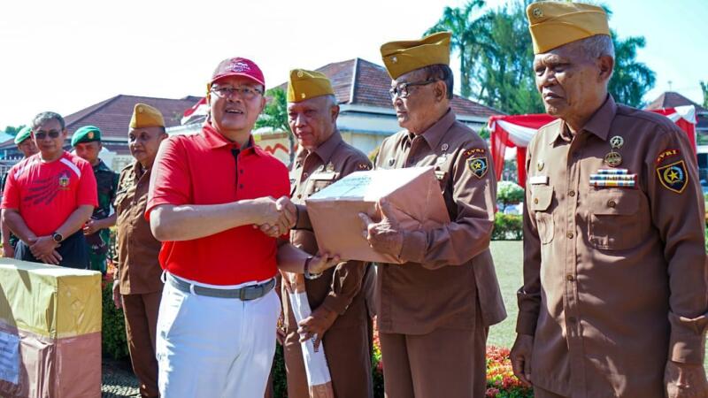 Pada acara Kirab ini, Gubernur Rohidin memberikan bantuan kepada para veteran yang turut serta dalam kirab Merah Putih.