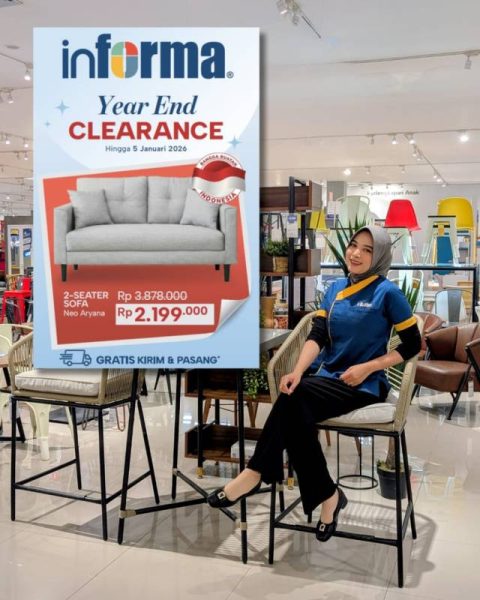Program Year End Clearance INFORMA Bengkulu berlaku hingga Senin, 5 Januari 2026, dengan ketentuan dan syarat yang berlaku. Pelanggan disarankan untuk segera berkunjung karena ketersediaan produk terbatas.
