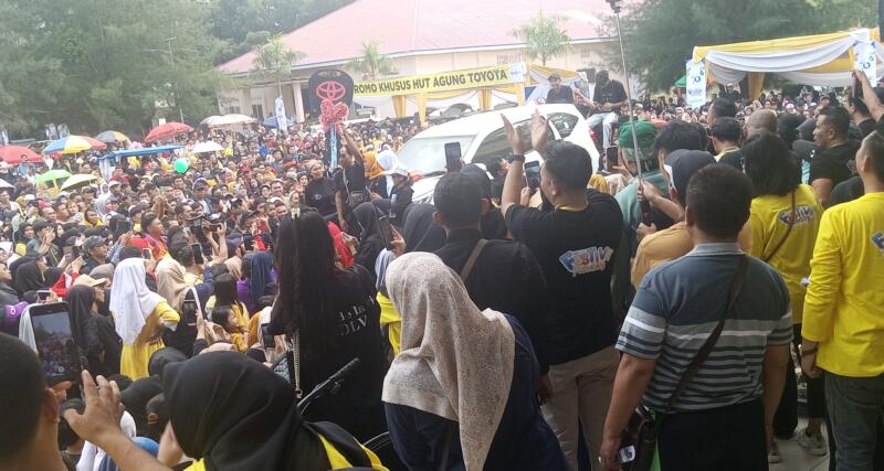 Ardian(46) warga Kota Bengkulu ketiban rezeki nomplok mendapat sebuah mobil Calya, saat Gubernur Bengkulu Rohidin mengundi kupon berhadiah jalan santai HUT ke 70 Agung Toyota Bengkulu.