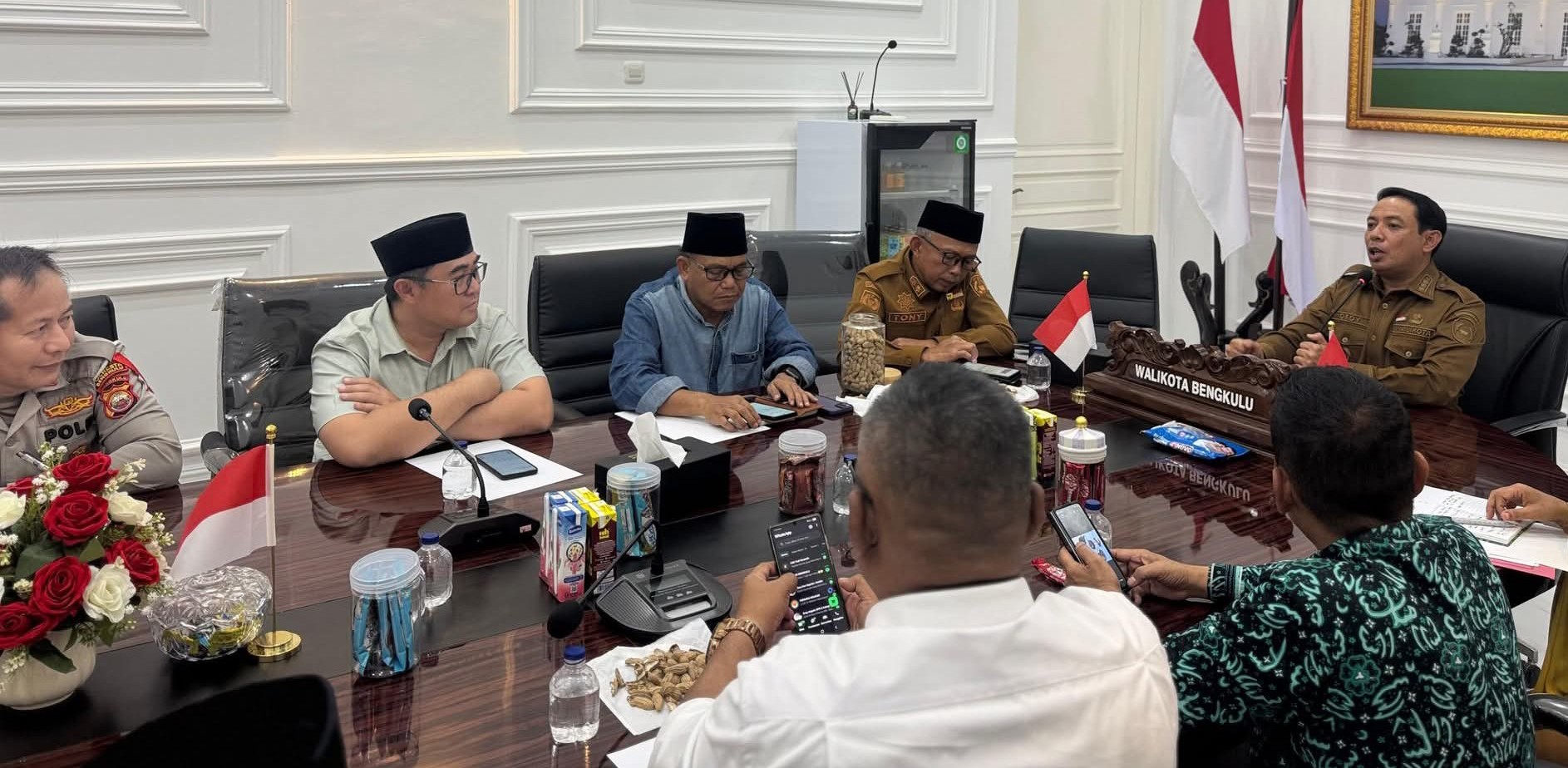 Rapat dipimpin Walikota Bengkulu Dedy Wahyudi dihadiri perwakilan Polresta Bengkulu, termasuk unsur pimpinan kepolisian, serta seluruh kepala Organisasi Perangkat Daerah (OPD) terkait di lingkungan Pemerintah Kota Bengkulu.