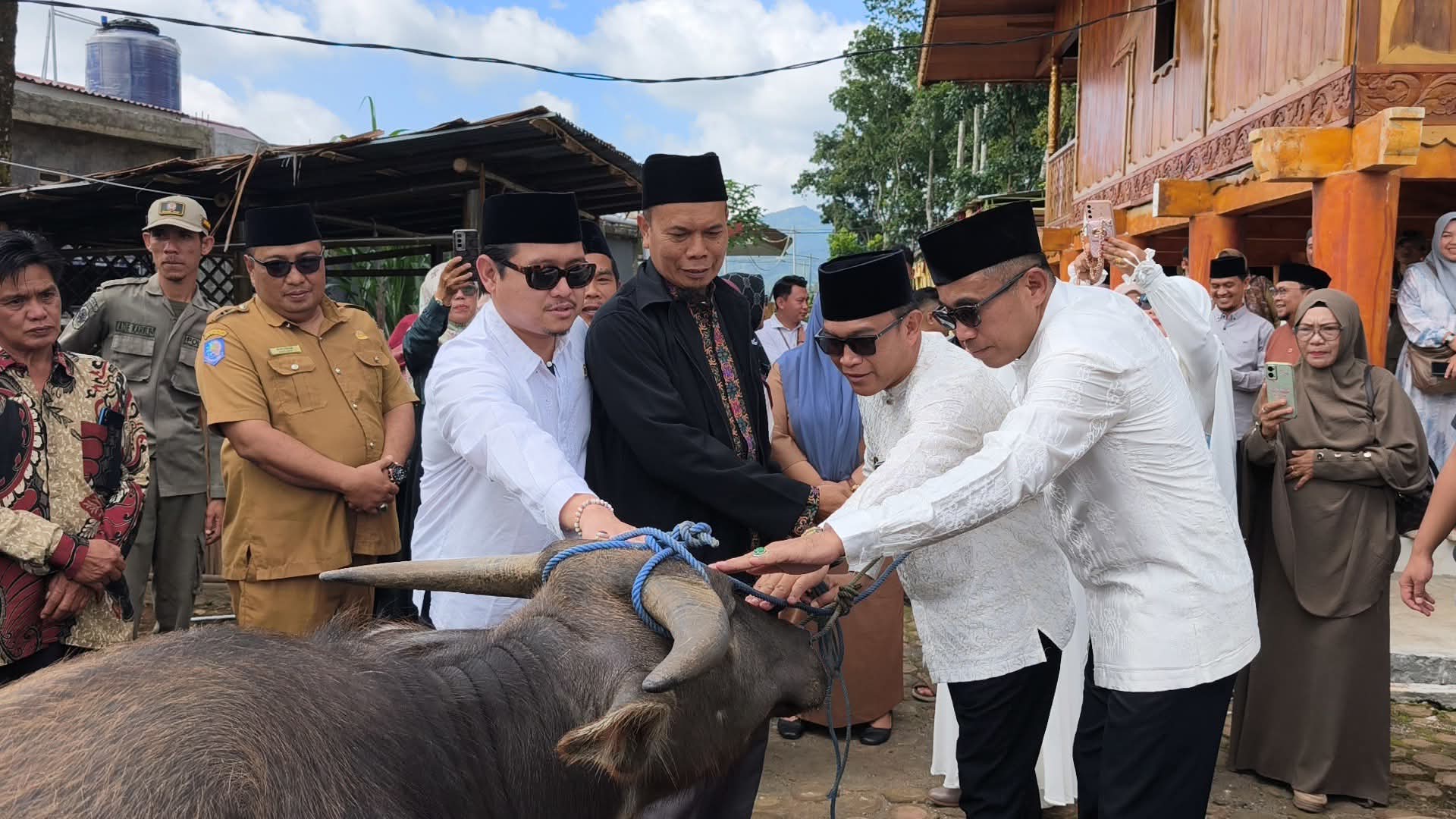 Menjelang prosesi penganugerahan gelar adat, Bupati Kepahiang bersama Wakil Bupati dan Ketua DPRD menyerahkan satu ekor kerbau untuk disembelih sebagai bentuk rasa syukur atas gelar yang akan diterima. Penyerahan kerbau dilakukan di halaman Rumah Adat Rejang Kepahiang, Selasa (6/1/2026) pukul 09.00 WIB, dan diterima langsung oleh Ketua LARK Kepahiang Gusti Santoso, S.IP.