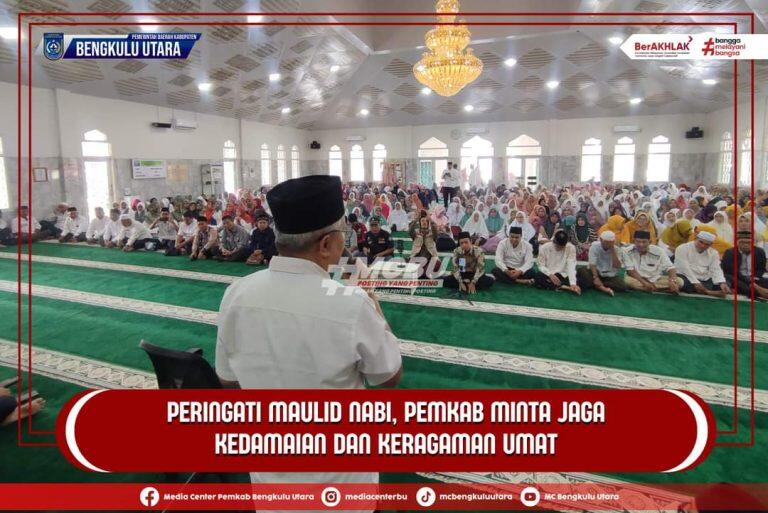 Maulid tersebut dihadir Bupati Bengkulu Utara dan Wakil Bupati yang diwakili Asisten I Bidang Pemerintahan dan Kesejahteraan Rakyat Daerah BU di Masjid Baitul Makmur pada Rabu (18/9/2024).