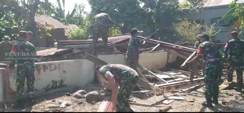 Rumah ibu Dahlia yang tak layak huni tersebut dirobohkan dengan cepat oleh anggota TNI Kodim 0407 Bengkulu.