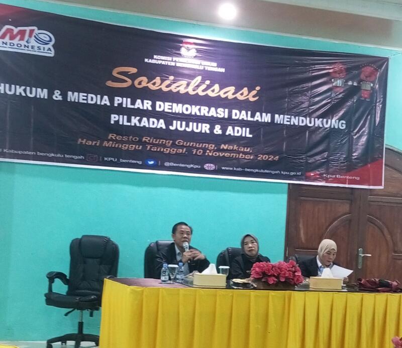KPU Kabupaten Bengkulu Tengah(Benteng) sebagai penyelenggara Pilkada di daerahnya, bersama Media Online Independen Indonesia( MIO) Bengkulu menggelar sosialisasi dengan tema : Hukum dan Media Pilar Demokrasi dalam Mendukung Pilkada jujur dan Adil.