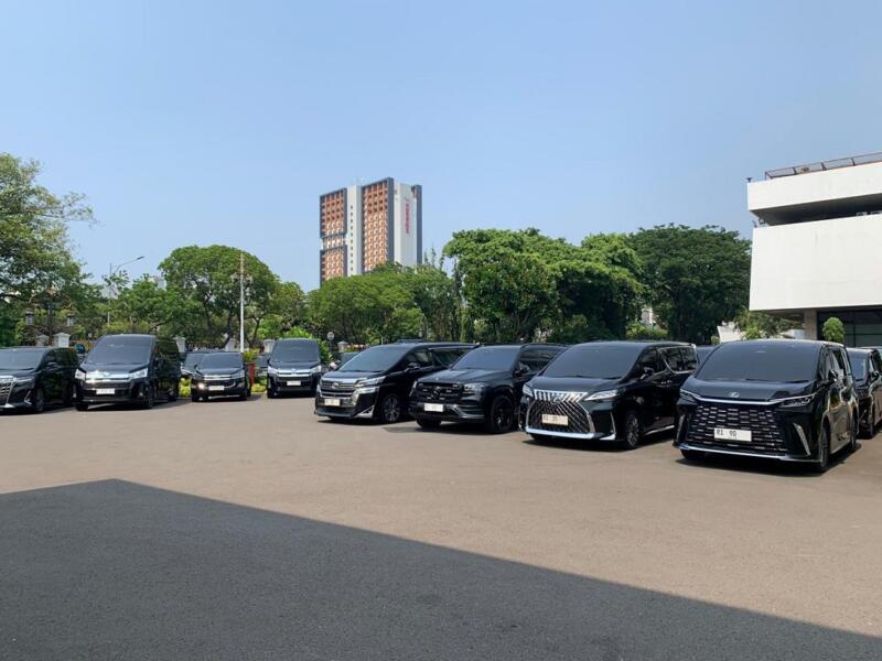 Tampak juga mobil-mobil dinas dari para menteri terparkir di lingkungan Istana Kepresidenan. Sementara itu, para menteri masih menggelar makan siang secara tertutup.