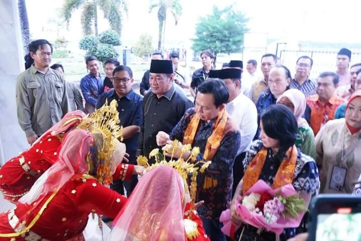 Kedatangan Sultan di Bandara Fatmawati Soekarno Bengkulu, pada Sabtu sore 11 Oktober 2024 disambut oleh Plt Gubernuŕ Bengkulu Rosjonsyah.